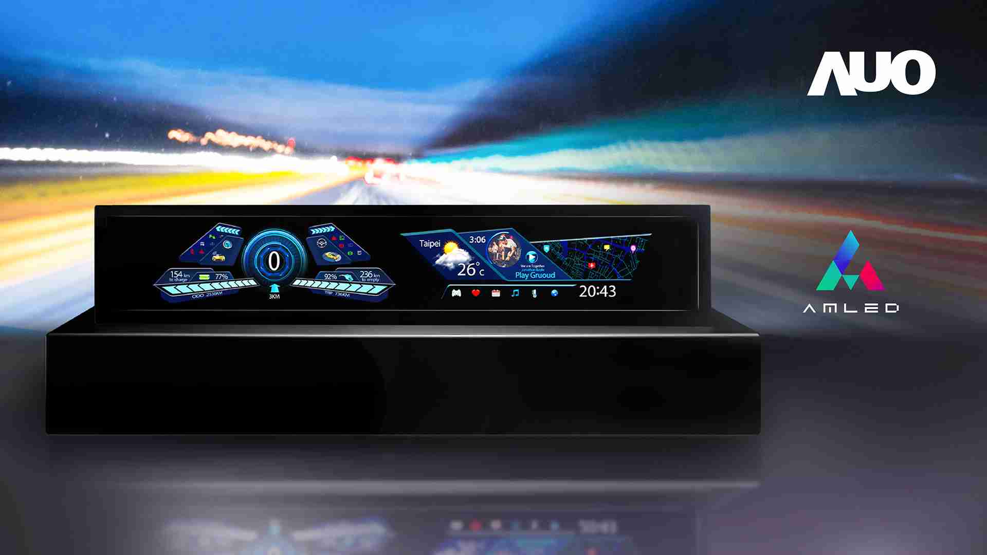 继 AmLED 技术以特有的高亮度、、高明室对比、、、高色容量、、高稳定性等优点获 IT 应用市场肯定,,,万利亦将大尺寸 AmLED 面板延伸导入车用市场,,以不断精进的独家动态调控科技,,结合内嵌式触控功能与极窄边框美型设计,,,于 CES 期间展示一系列车载显示器应用,,,期能推广 AmLED 技术应用于车载中控台与仪表板,,,,满足驾驶对于行车安全信息的可视性,,,以及车内乘客的视听娱乐需求,,,完美演绎智慧座舱未来想象。。