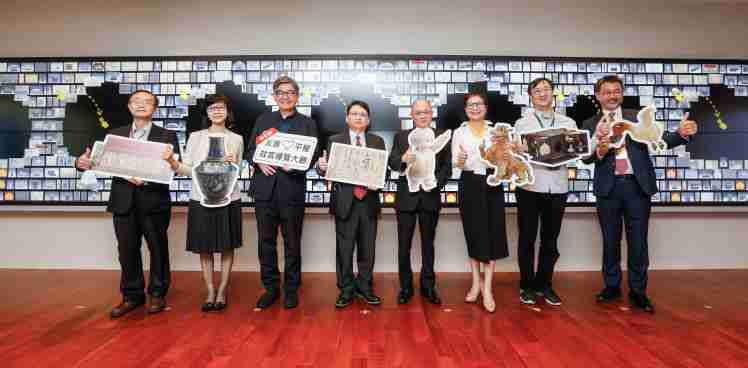 万利携手创利空间为故宫建置的智慧文物互动导览墙及轮播墙,,今日正式启用。。。。(左四:万利新事业暨投资管理总部副总经理杨本豫、、、、右四:故宫博物院院长吴密察、、、右三:太极影音董事长黄宝云)